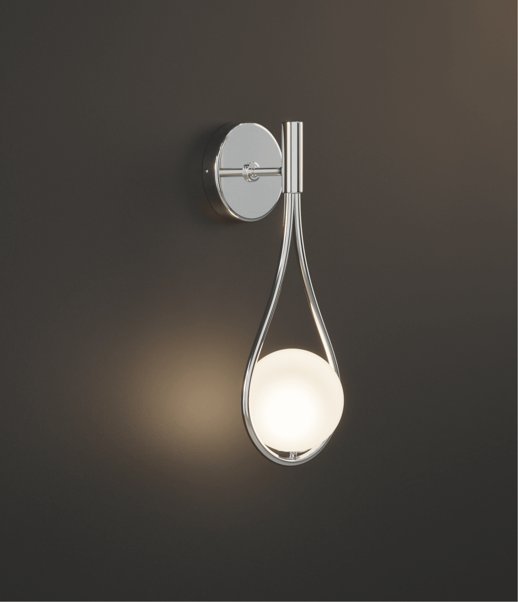 Ta lampa ścienna o geometrycznej formie może być stosowana w salonie, sypialni, jadalni lub korytarzu. Konstrukcja z metalowym wykończeniem i kloszem w kształcie kuli pozwala na równomierne rozprowadzanie światła w różnych typach wnętrz.