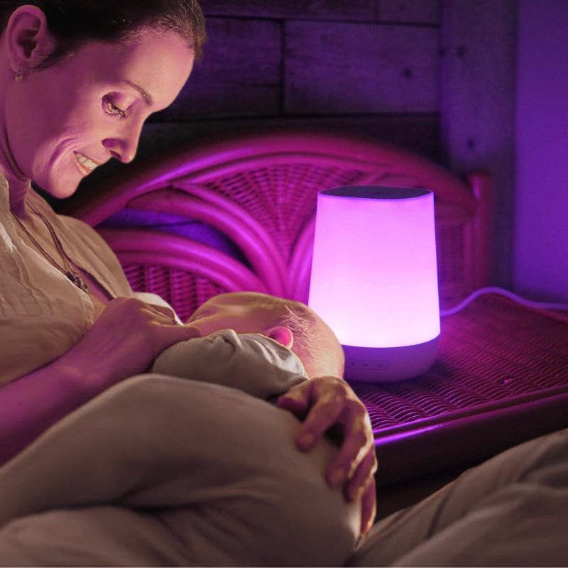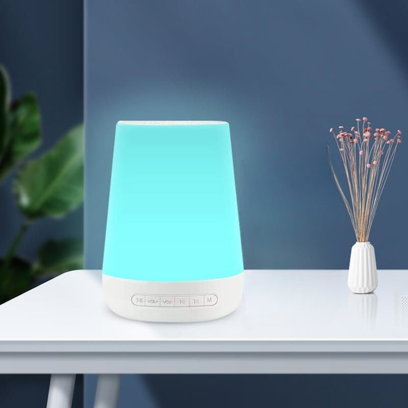 Lampa nocna przyłóżkowa urządzenie do białego szumu budzik zegar to inteligentne urządzenie do generowania białego szumu i oświetlenia nocnego. Urządzenie łączy funkcje sterowania głosem i zdalnej obsługi przez aplikację mobilną. Posiada szeroką bibliotekę dźwięków i regulowany timer pracy.