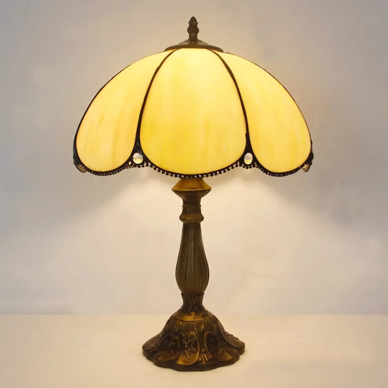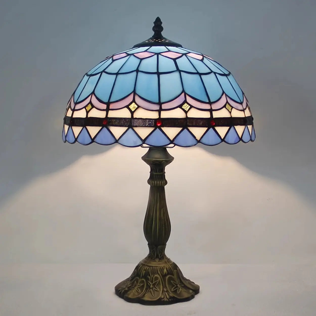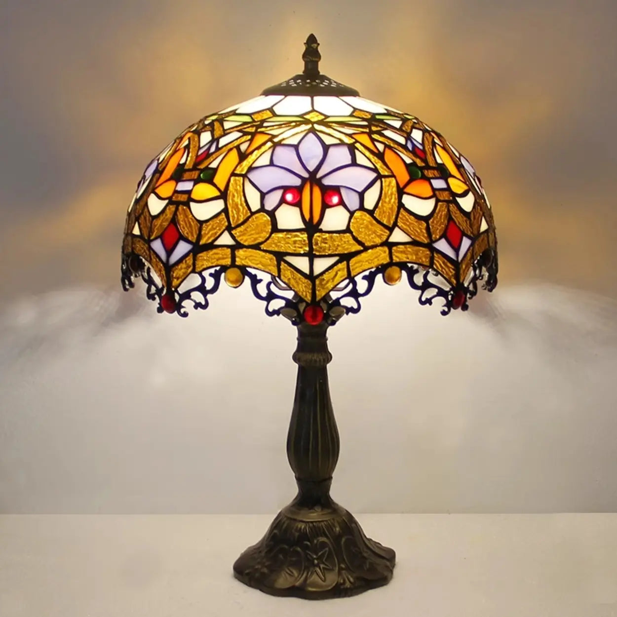 Lampa stołowa z kloszem kopułowym z witrażowego szkła
