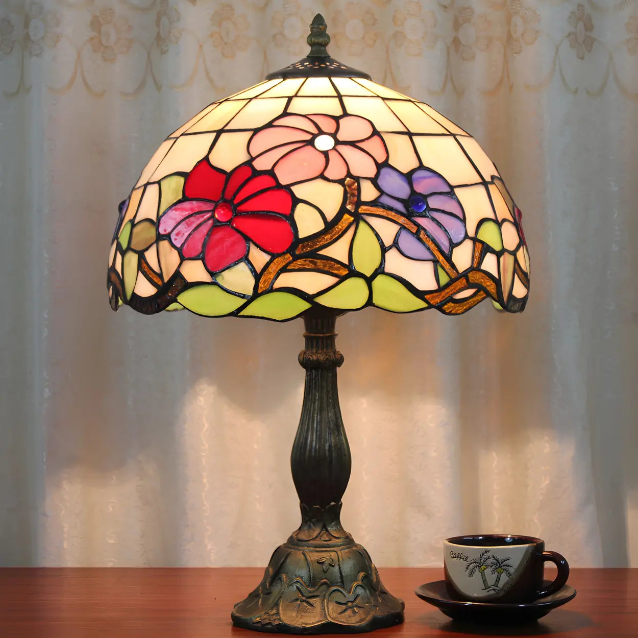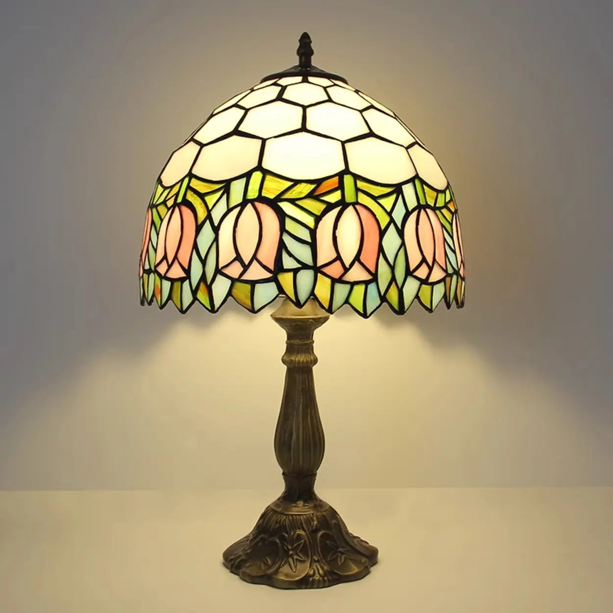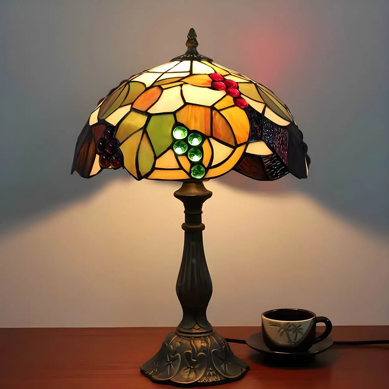 Lampa stołowa z kloszem kopułowym z witrażowego szkła