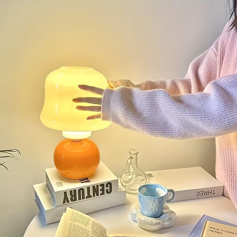 Ta lampka stołowa składa się z dwóch części: zaokrąglonej podstawy i klosza w kształcie dzwonka. Lampka jest zasilana przez USB, co umożliwia podłączenie do kompatybilnych źródeł zasilania. Jej rozmiar sprawia, że nadaje się na biurka, stoliki nocne lub stoliki boczne.
