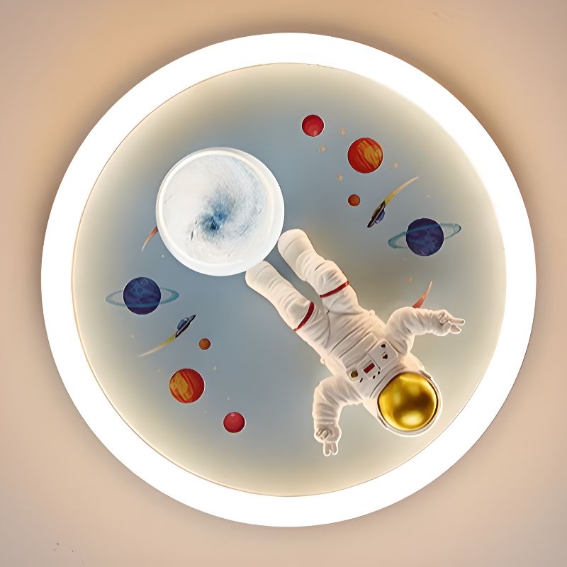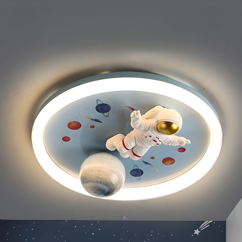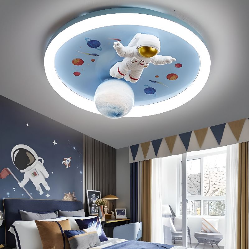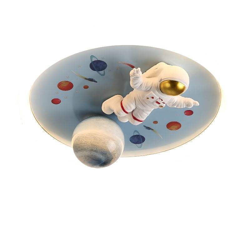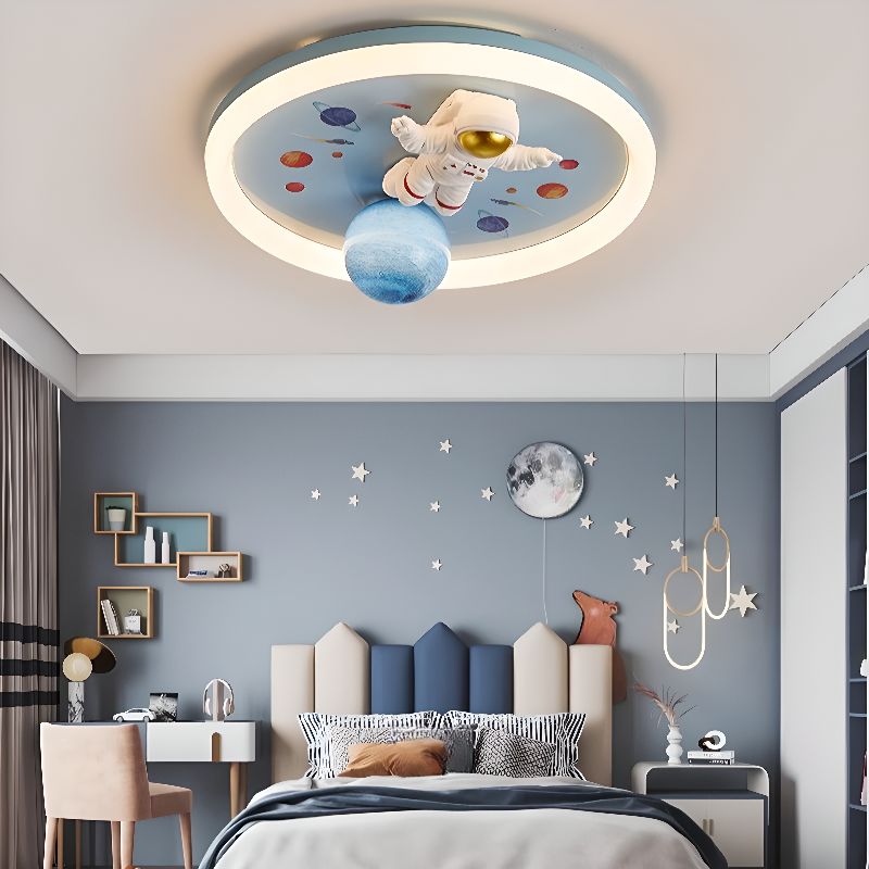 Ta lampa sufitowa LED została zaprojektowana z myślą o pokojach dziecięcych inspirowanych przestrzenią kosmiczną. Motyw astronauty i planet w połączeniu z równomiernym oświetleniem tworzy ciekawy akcent na suficie. Lampa jest wyposażona w trzystopniową regulację jasności, co pozwala dostosować natężenie światła do różnych potrzeb.