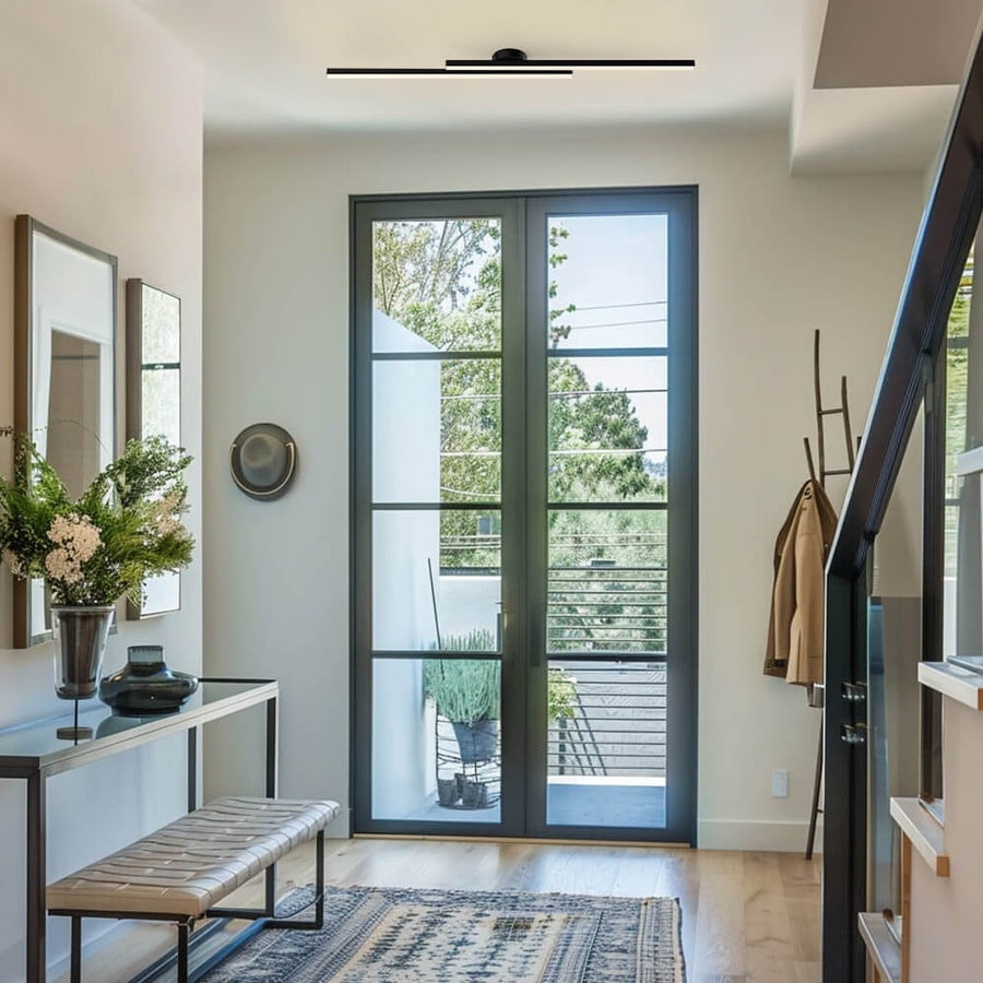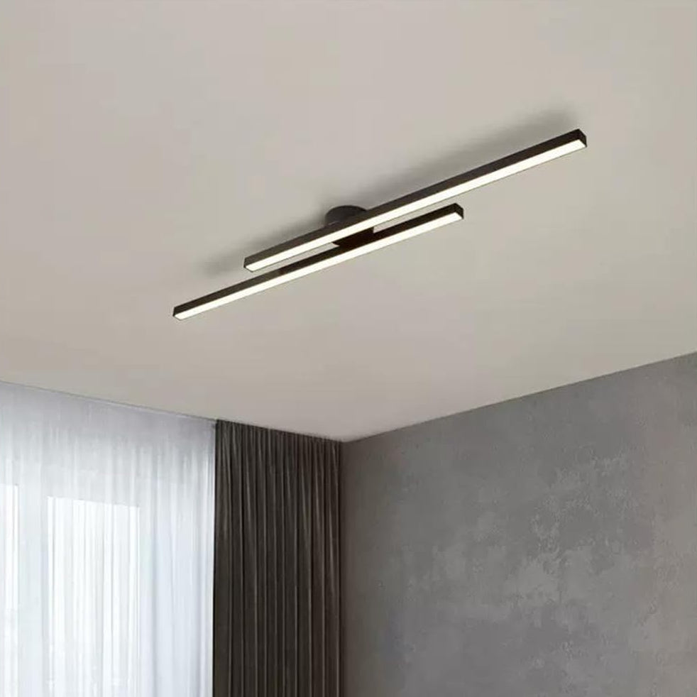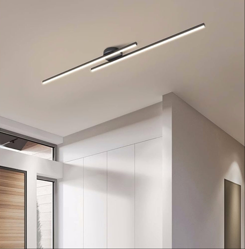 Lampa sufitowa LED ma podwójną konstrukcję plafonu o wydłużonym kształcie. Wykonana z aluminiowa o gładkim wykończeniu, zapewnia równomierne oświetlenie wnętrz i prosty montaż bezpośrednio do sufitu.