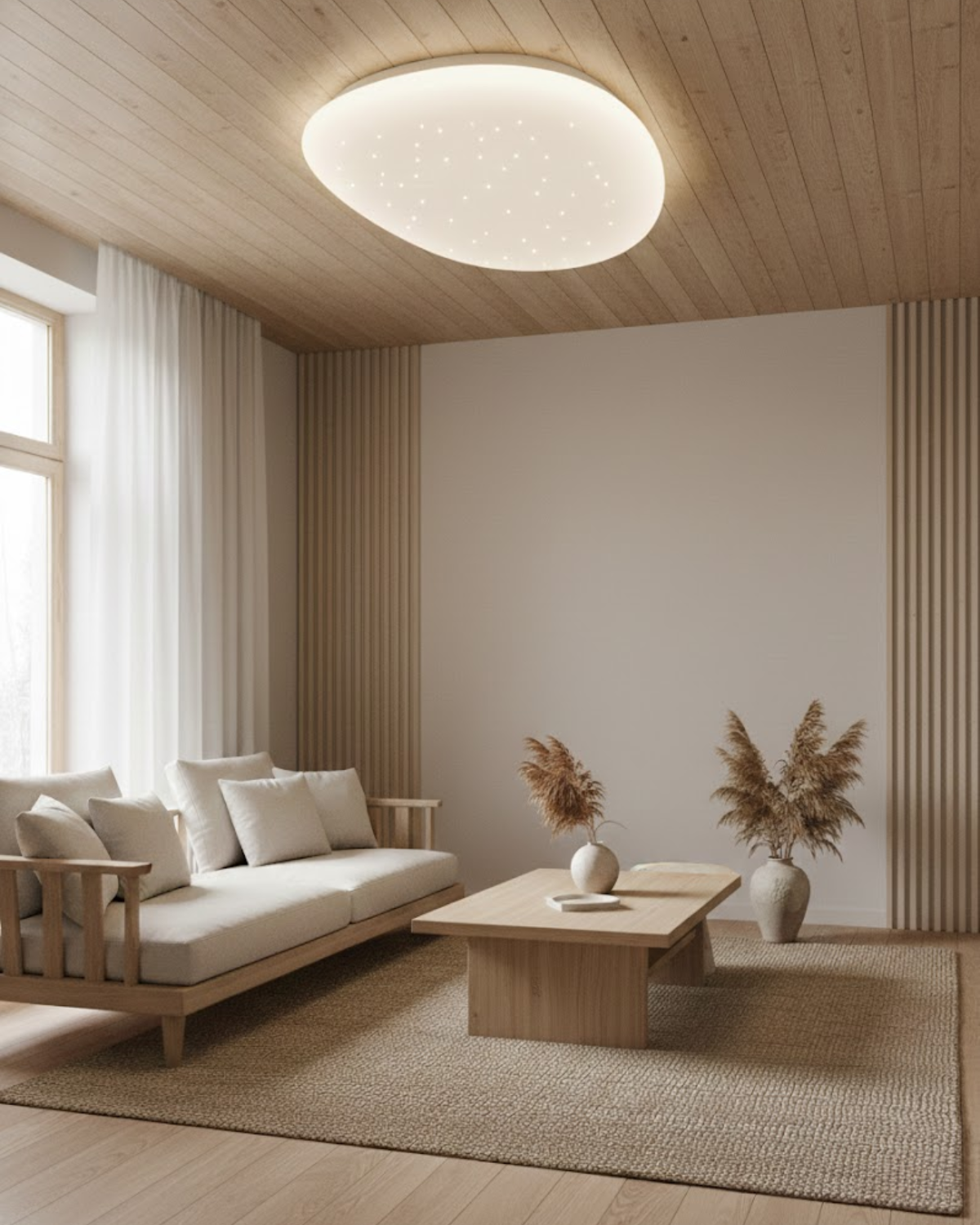 Lampa sufitowa z zintegrowanym modułem LED i widoczną ramą.