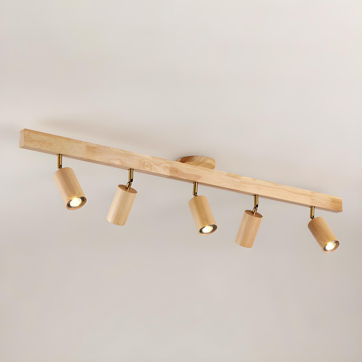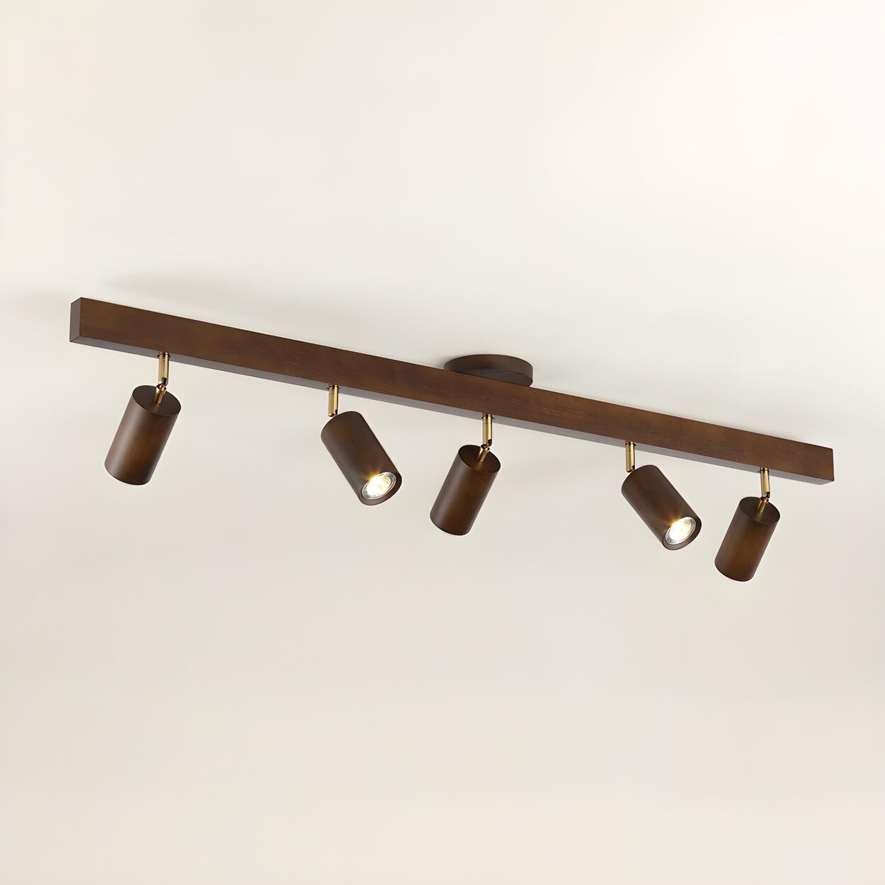 Nowoczesna lampa sufitowa LED z ruchomymi reflektorami zapewnia oświetlenie dostosowane do różnych przestrzeni. Konstrukcja z elementami drewnianymi oraz możliwość regulacji kierunku światła pozwalają na użycie lampy w wielu typach wnętrz.