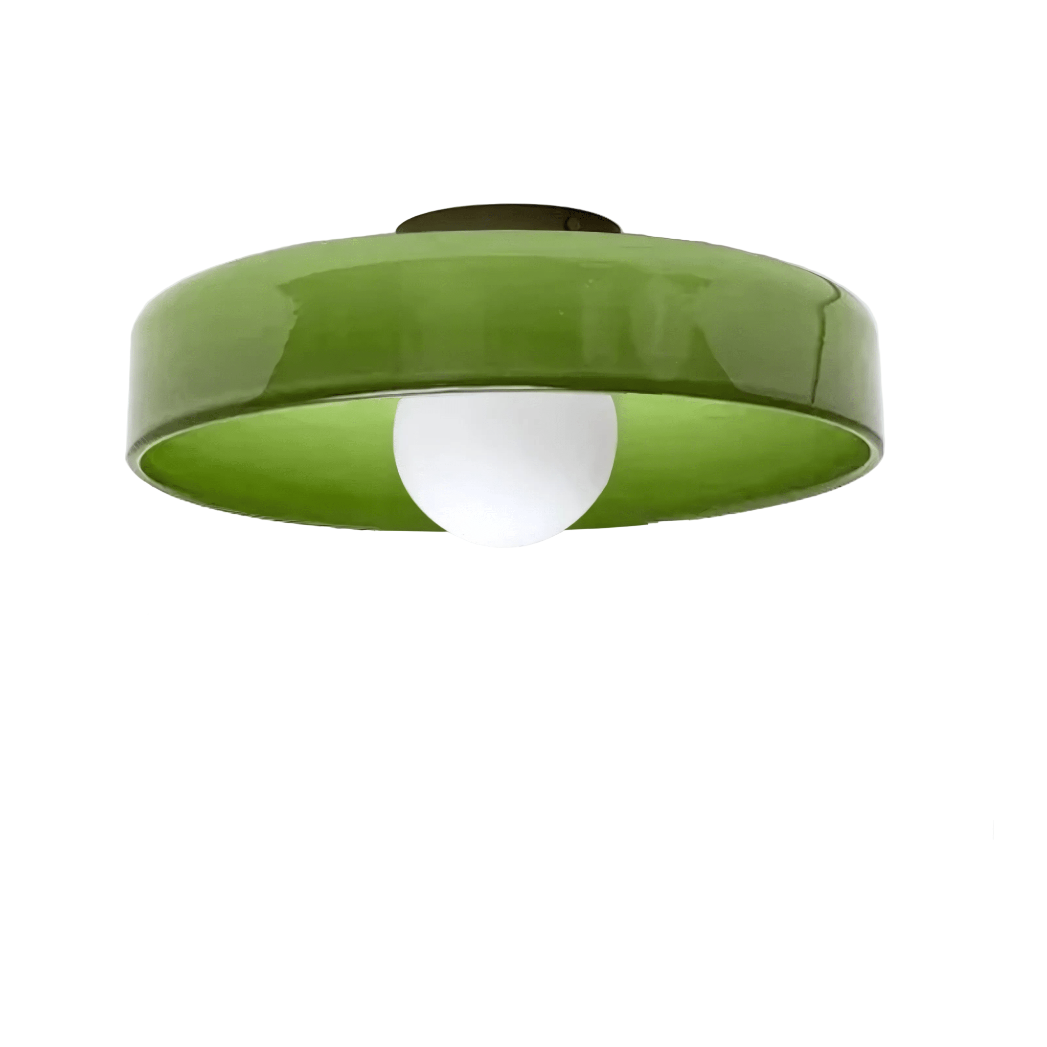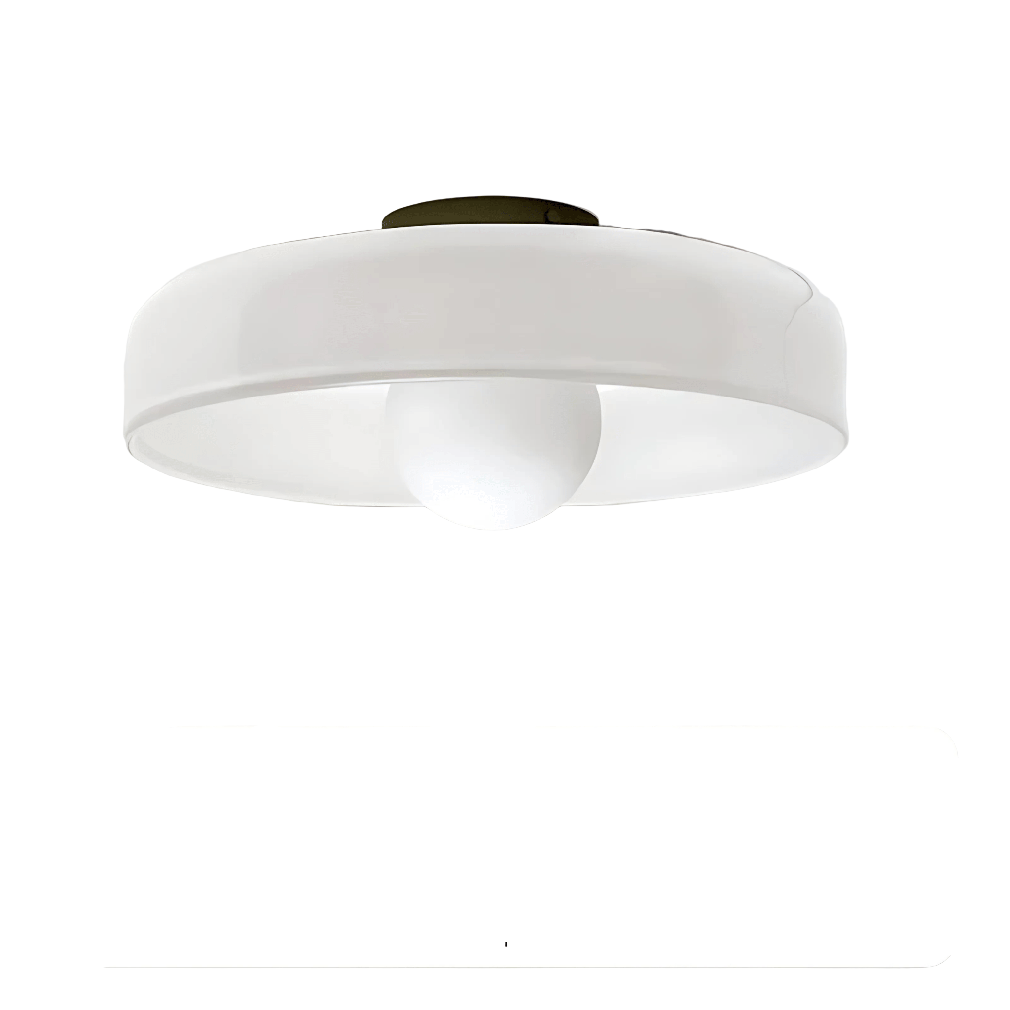 Ta lampa łączy praktyczne zastosowanie z prostą formą, mogąc pełnić funkcję lampy sufitowej lub ściennej. Okrągły kształt i gładka powierzchnia tworzą spójną całość, odpowiednią do różnych pomieszczeń.