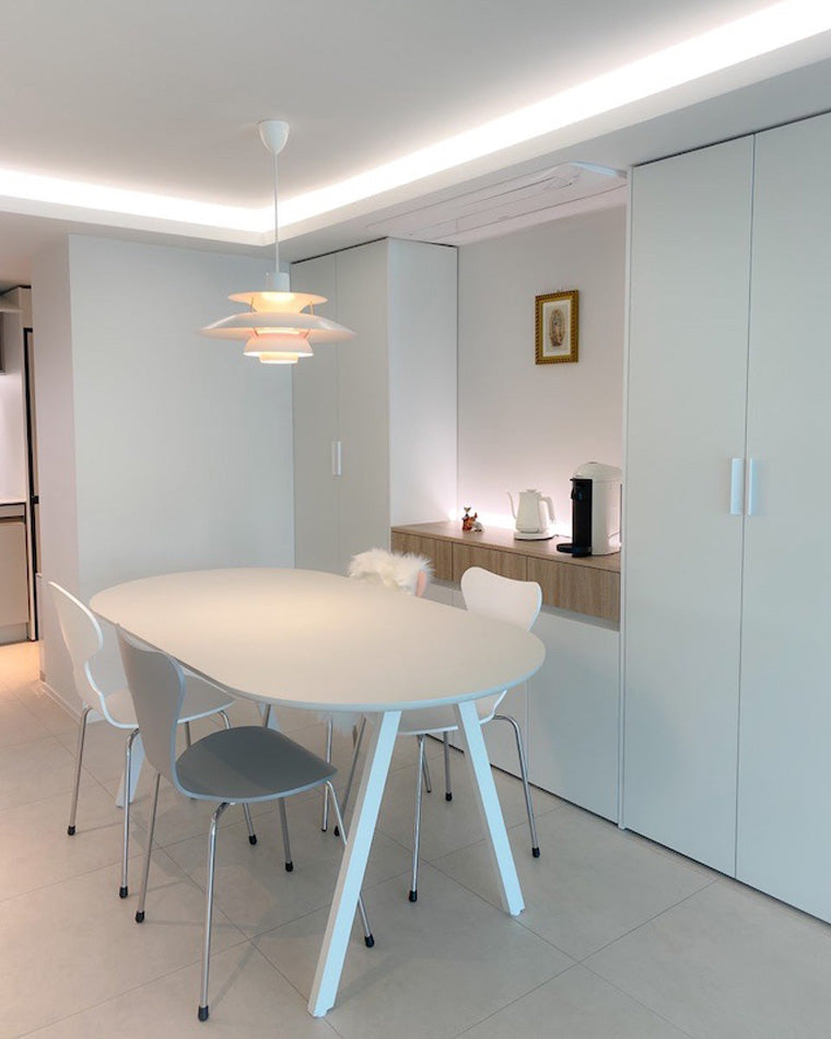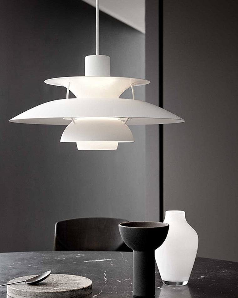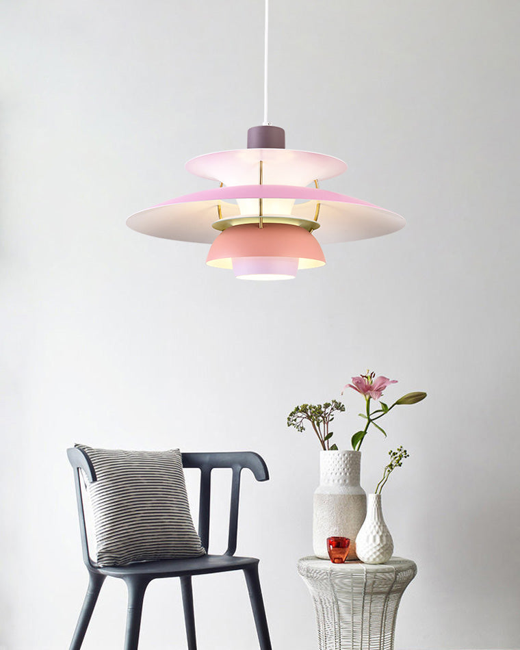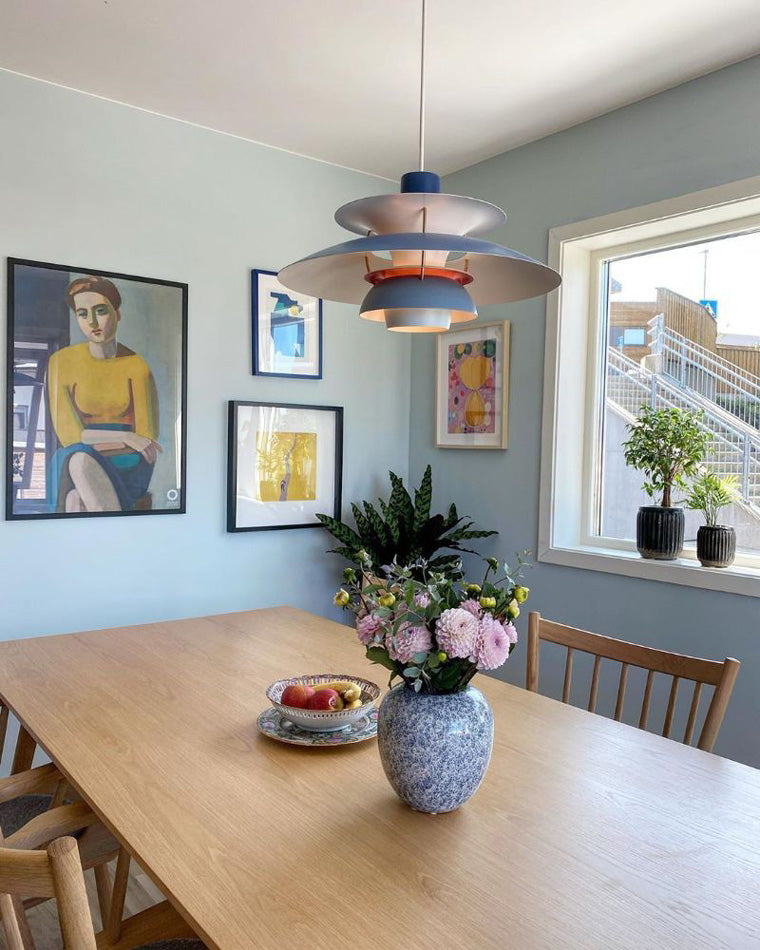 Geometryczna lampa wisząca LED nad stołem w stylu skandynawskim