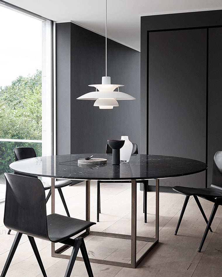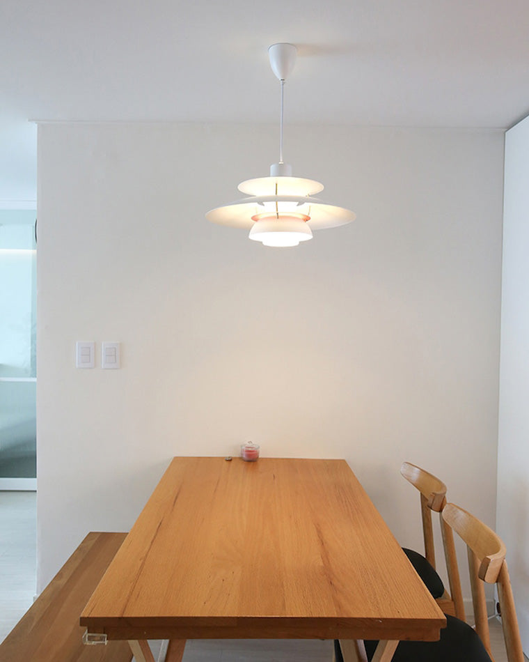 Nowoczesny design: Geometryczna forma tworzy stylowy akcent nad stołem.